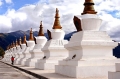 从州府中甸乘车至德钦县城,再往城东行数公里,就到了飞来寺。此时,作为梅里雪山主体雪蜂的太子十三蜂,就展现在视野里。若巧逢天气晴朗,那清远澄净的蓝天,映衬着高洁雄奇的雪峰,卡瓦格博峰白色的锋芒直指苍宫。其左右排列的各个雪峰,都仿佛受其制约着,又仿佛是其摩下的不可分离的一个整体。